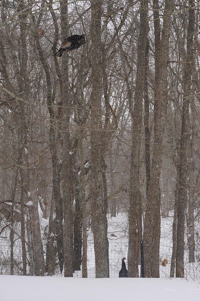 As a side note, a fantastic perk about being outside this morning, besides the beauty of it all, was finding a dozen huge wild turkeys perched in various trees around our property. There was one on the ground for some reason, and both Rosaria and I were very concerned that it couldn’t fly and that it was going to freeze, sitting or standing as it was, in the snow. Of equal concern is what do turkeys eat when the ground is covered with a couple of feet of snow? Anyone know? I’m posting this with dusk descending outside. The turkeys have moved on, including the one on the ground. I hope they find a sheltered place for the night. Personally, I’m lighting a fire, having a glass of wine, and I’ll be trying to talk Rosaria into a back massage.