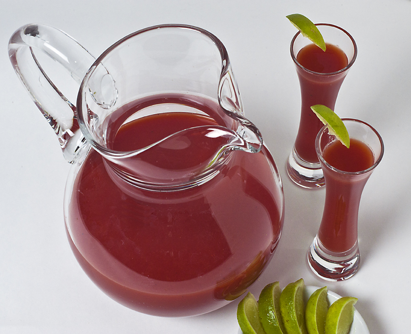 Mix ingredients in a glass pitcher, cover and chill in refrigerator. When ready to serve, add about 10-12 oz Talero Tequila (about a 1 to 3 tequila to sangrita ratio), mix well, and pour into shot glasses.