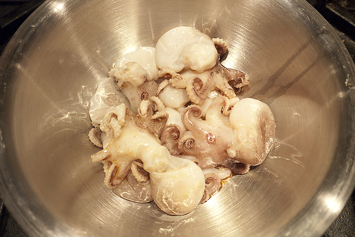 4 pounds baby octopus: if frozen, thaw in cold water or in the refrigerator