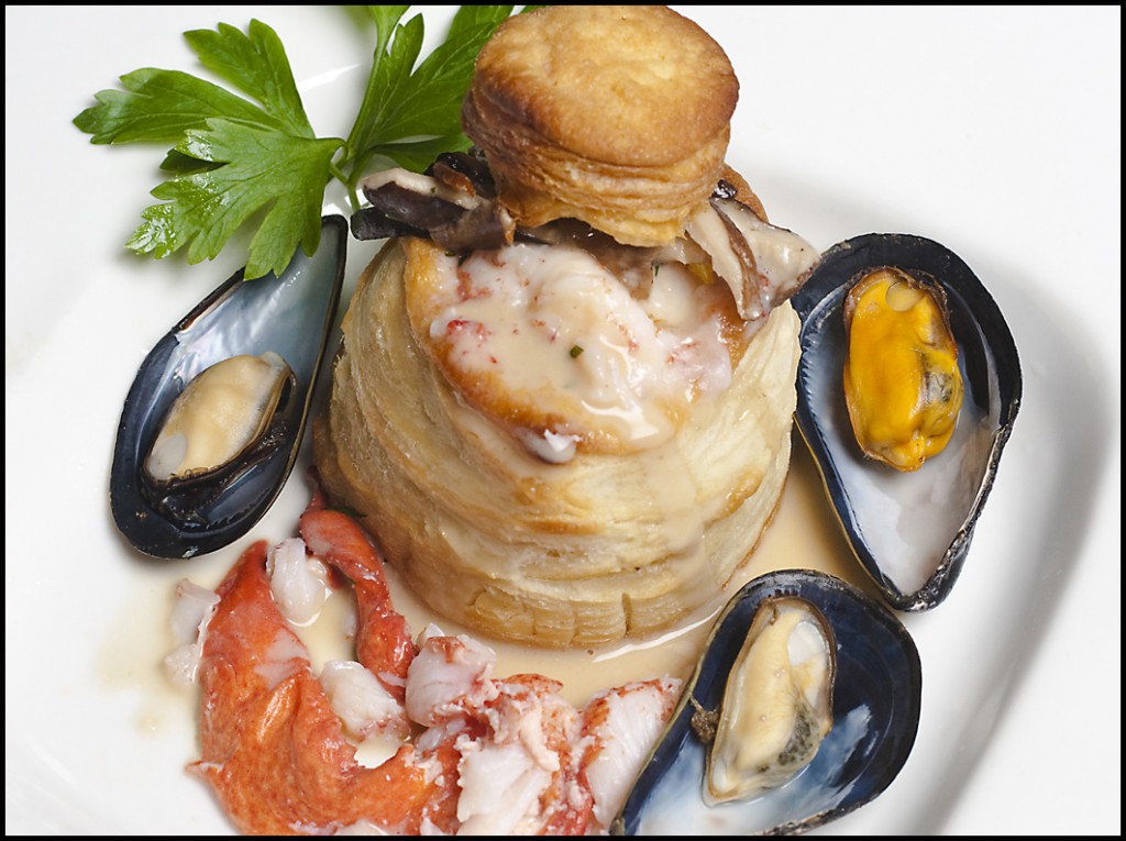 Lobster in Puff Pastry with PEI Blue Mussels and Shiitake Mushrooms