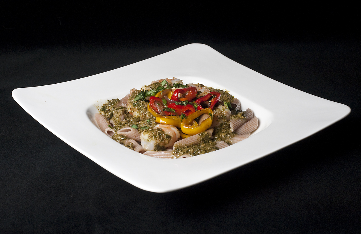Penne di Farro:  better than whole wheat.  Spelt Penne with baby peppers and shrimp in pesto sauce